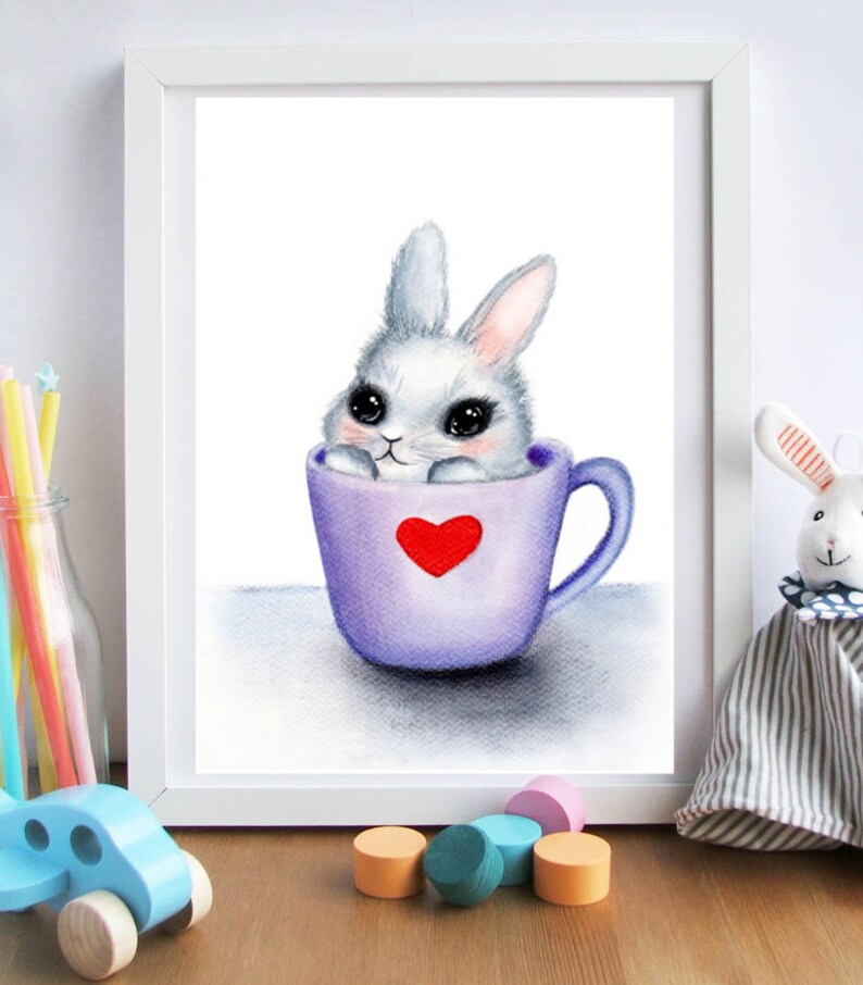 Bunny Nursery Decor Bunny Wall Art Baby Girl Nursery Decor Etsy