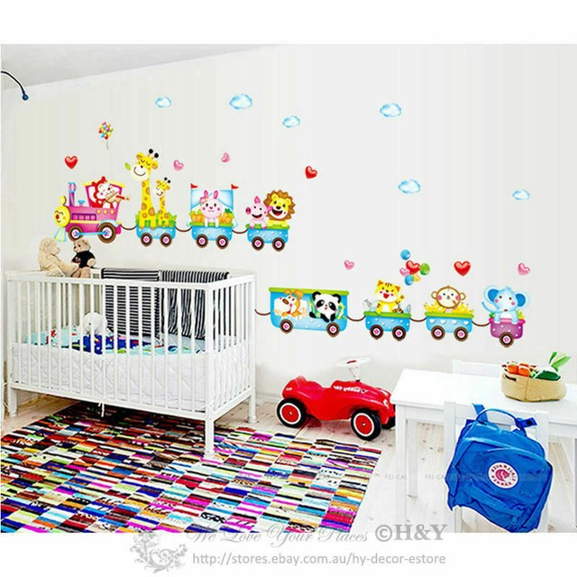 Safari Animals Train Wall Stickers Nursery Decor Baby Kids Art
