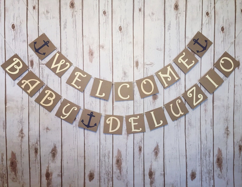 Welcome Baby Name Banner Nautical Baby Sign Nautical Baby Etsy