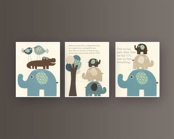 Baby Boy Room Nursery Print Baby Elephant Blue And Brown 3 Etsy