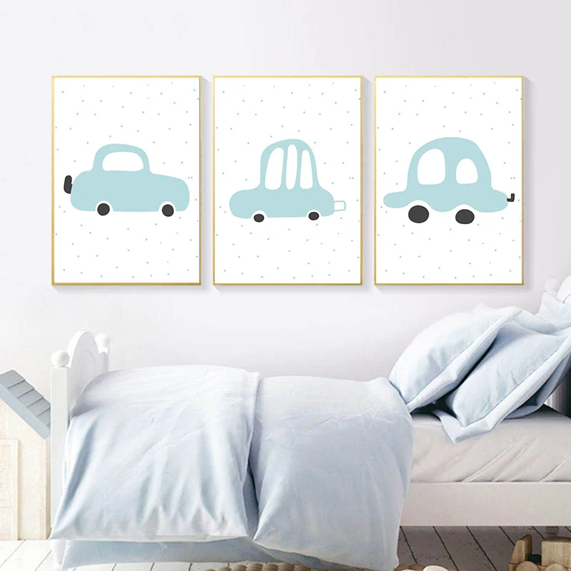 Cartoon Vehicle Car Nursery Child Poster Print Wall Art Canvas