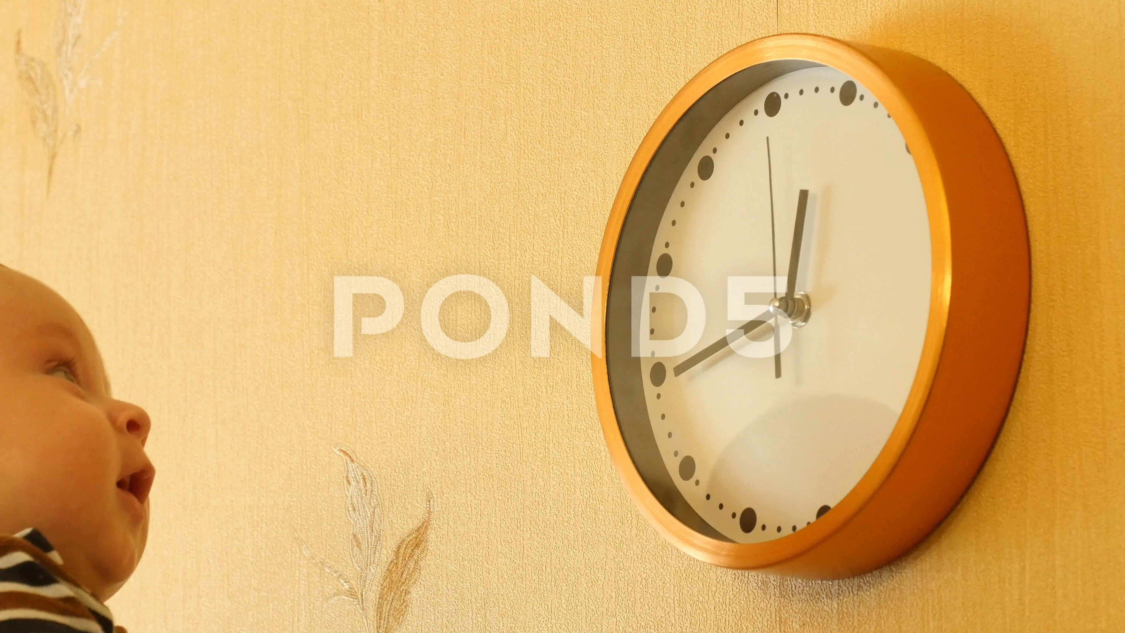 Video 3 4 Months Baby Boy Looking On Wall Clock Time Concept