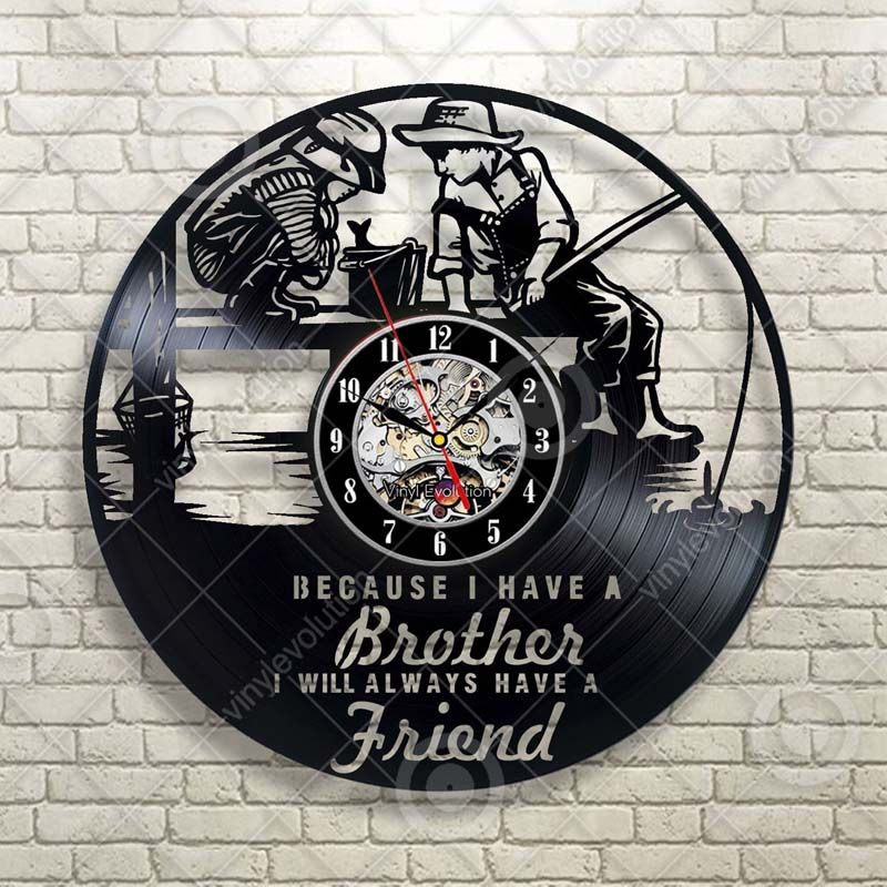Brothers Fishing Family Party Vinyl Wall Clock Gift For Brother