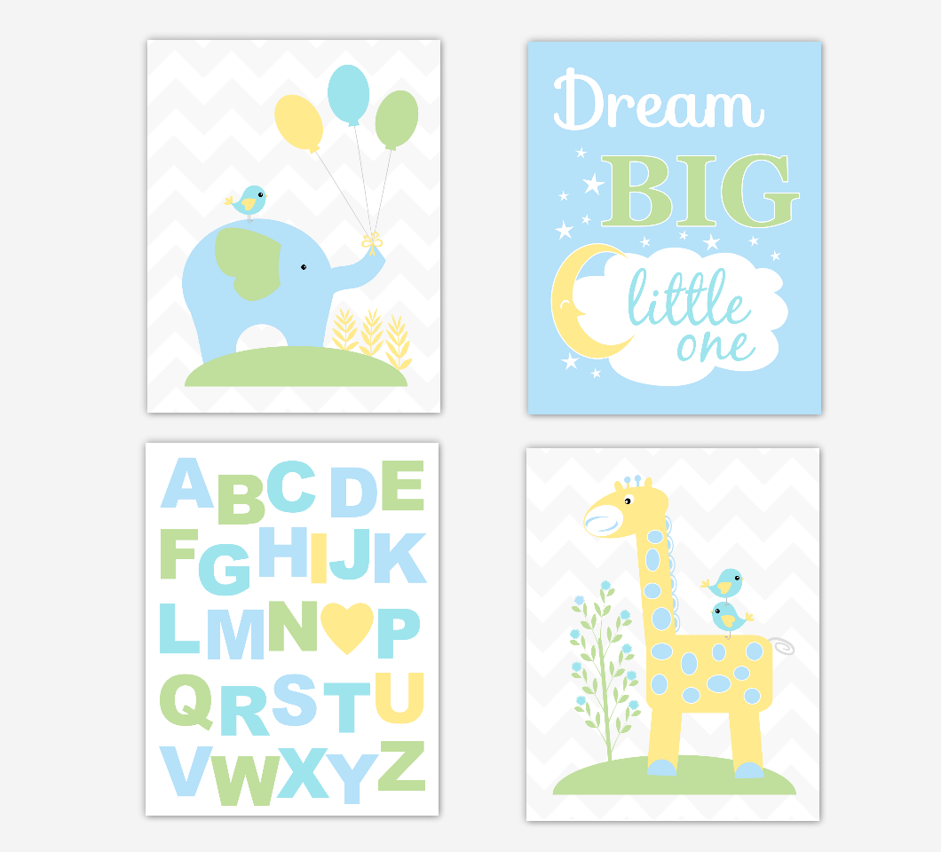 Blue Yellow Safari Elephant Giraffe Baby Boy Nursery Decor Blue