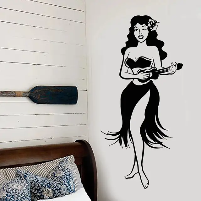 Hawaiian Girl Hula Dancer Wall Stickers Hawaii Ukulele Vinyl Wall
