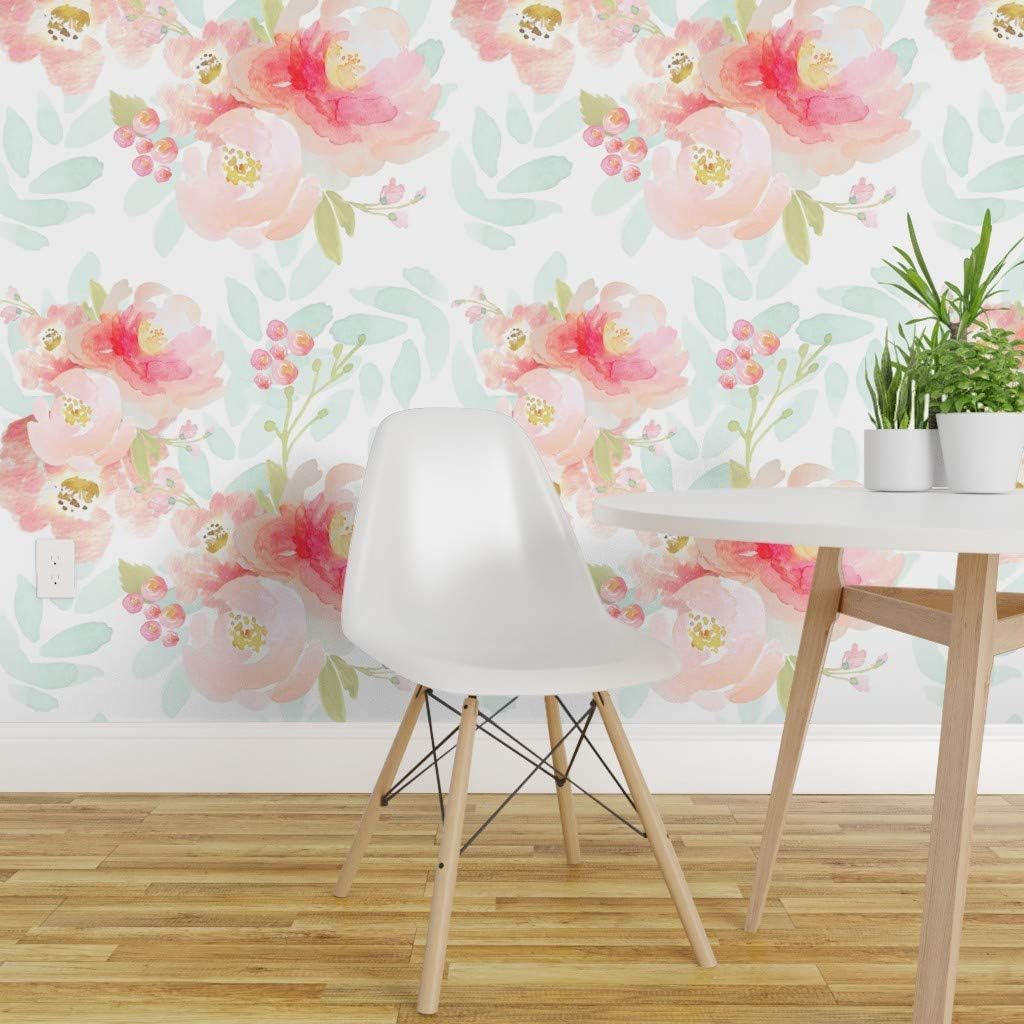 Spoonflower Peel And Stick Removable Wallpaper Floral Watercolor